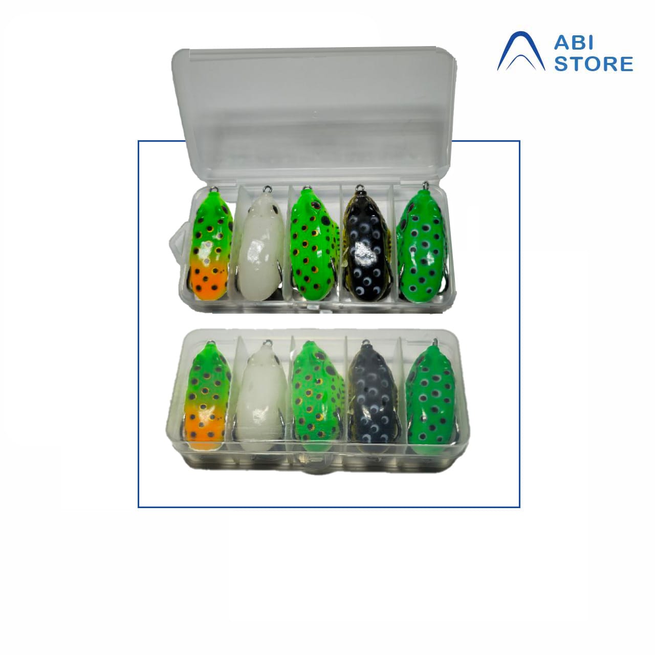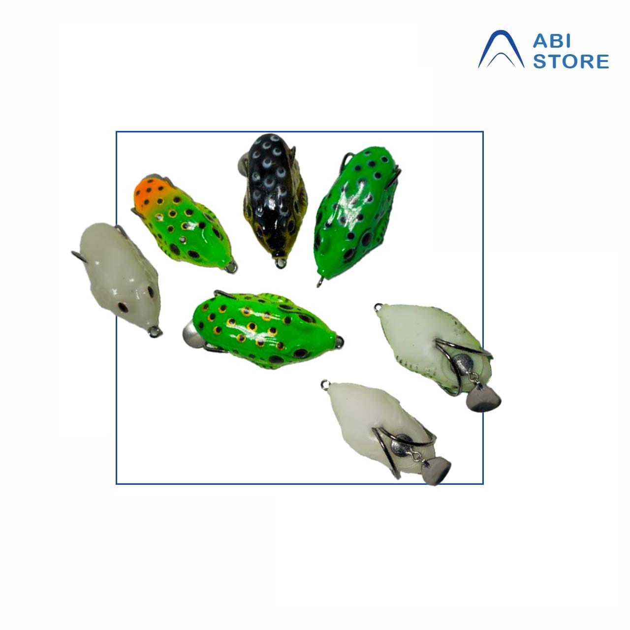 این محصول در فروشگاه آبی استور در بسته بندی پنج عددی و چند رنگ عرضه می شود . رنگ سفید قورباغه سیلیکونی به دلیل مواد فسفرسانس به کار رفته در ساخت این طعمه دارای تابش نور یا به اصطلاح شبنما می باشد.